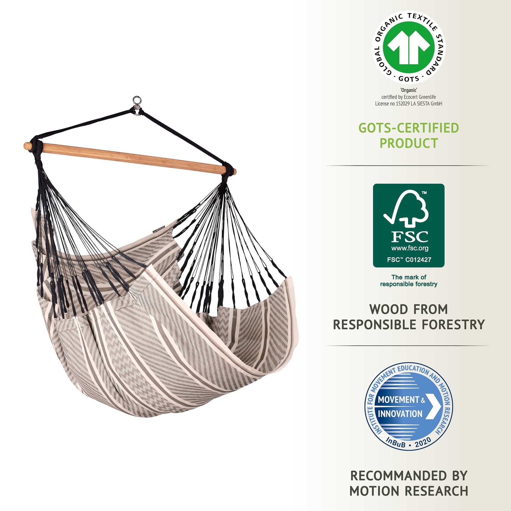 • Κατά την παραγωγή και τη μεταφορά των κρεμαστών καρεκλών μας, οι εκπομπές που παράγονται αντισταθμίζονται από ένα αναγνωρισμένο έργο προστασίας του κλίματος.