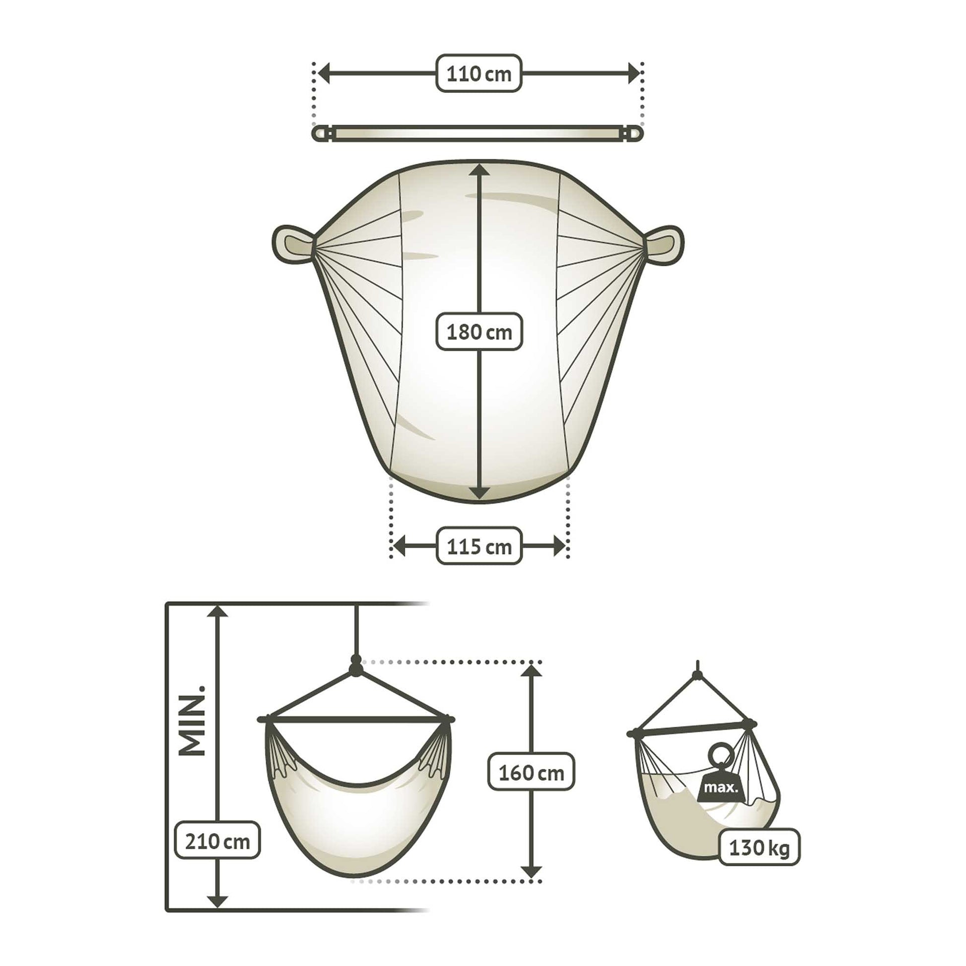 • Η ποιότητα μιας καρέκλας αιώρας μπορεί να μετρηθεί από τον αριθμό των κορδονιών ανάρτησής της. Περισσότερα κορδόνια σημαίνουν καλύτερη κατανομή βάρους και αυξάνουν την αντοχή και την άνεση της πολυθρόνας αιώρας σας.