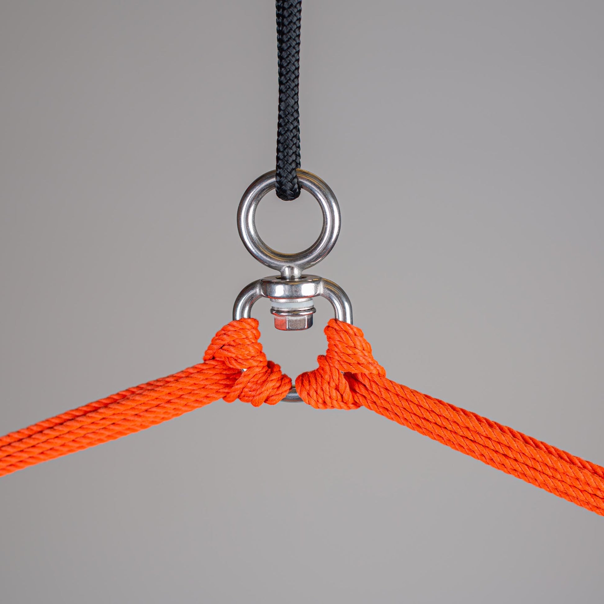 Ο ενσωματωμένος περιστρεφόμενος κρίκος ασφαλείας από ανοξείδωτο ατσάλι επιτρέπει την ελεύθερη περιστροφή 360°, χωρίς να μπερδεύονται τα σχοινιά της αιώρας σας.