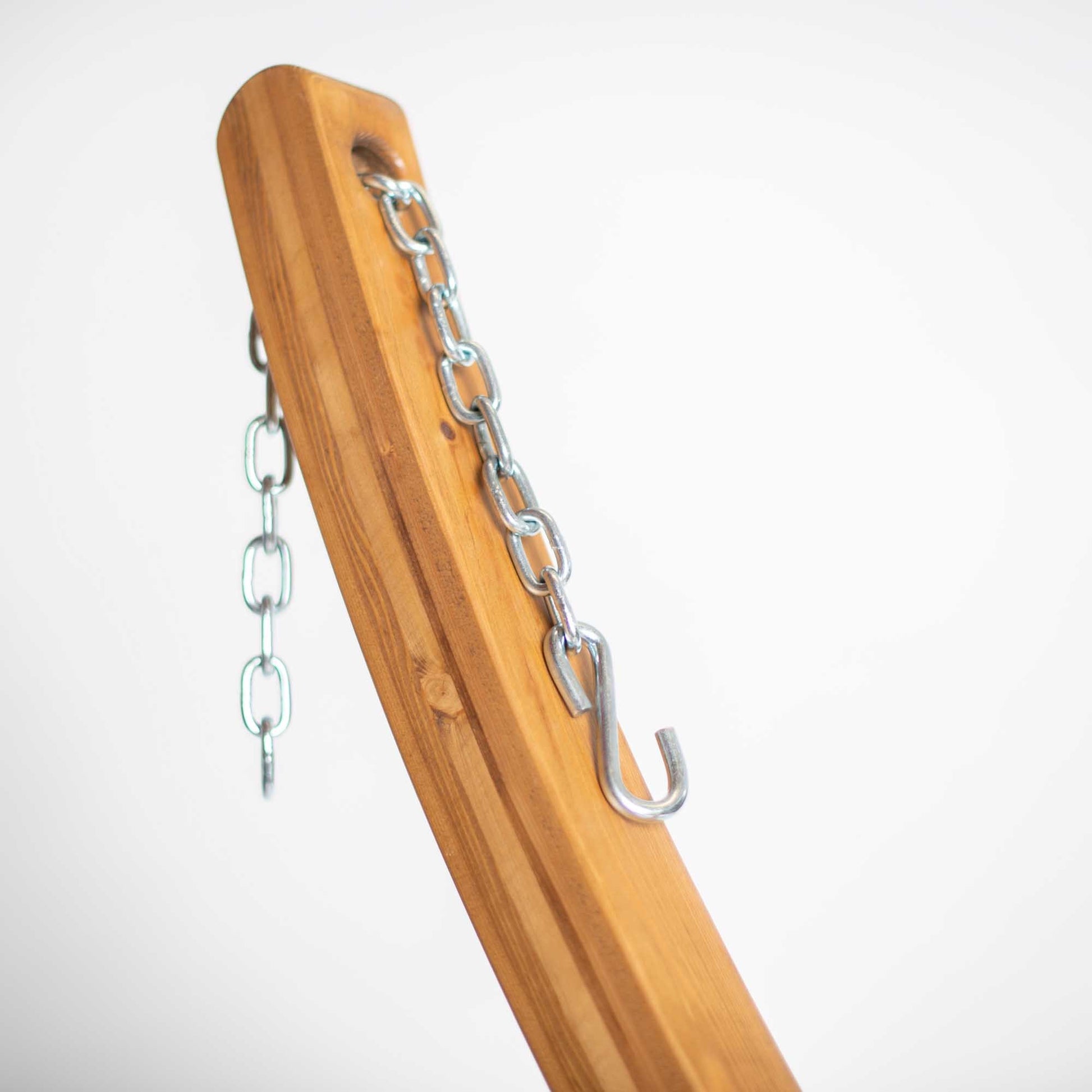 Η αιώρα μας αποτελείται από 60% πολυεστέρα, 20% βαμβάκι και 20% βισκόζη, ενώ η μπάρα είναι από σημύδα πιστοποιημένη κατά FSC™.