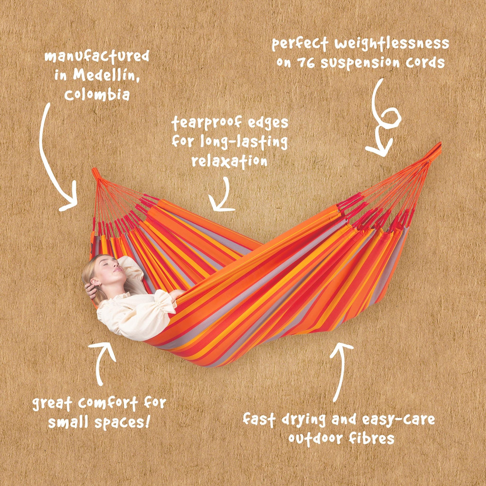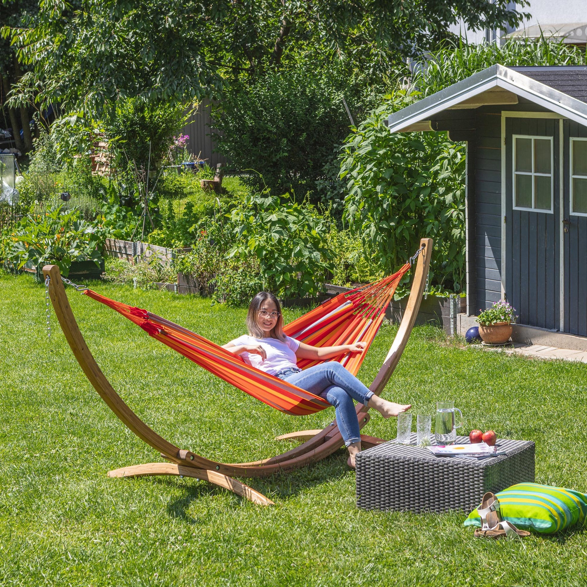 H αιώρα Brisa είναι ιδανική για τον κήπο ή το αίθριο, χάρη στο μοναδικό, προσεκτικά βαθμονομημένο ύφασμα εξωτερικού χώρου.