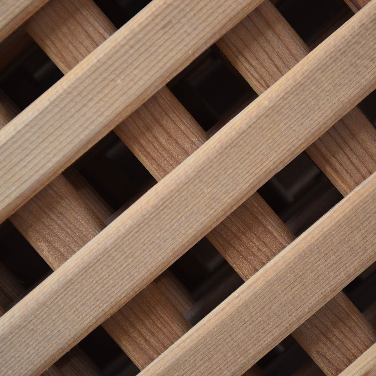 Καφασωτό κατασκευασμένο από μασίφ ξύλο κέδρου. Κατασκευασμένο από μασίφ ξύλο από την οικογένεια των Κυπαρισσιών, δικτυωτό καφασωτό σε σχήμα διαμαντιού υψηλής ποιότητας, έτοιμο για χρήση.