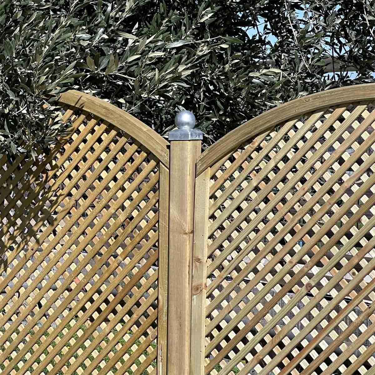 Το καφασωτό Διαμάντι Αψίδα 2 x 2εκ. είναι κατασκευασμένο από εμποτισμένο σκανδιναβικό πεύκο. Αποτελείται από εξωτερικό πλαίσιο διατομής 4,5 x 4,5εκ. και εσωτερικά από πηχάκια διατομής 0,8 x 2εκ.