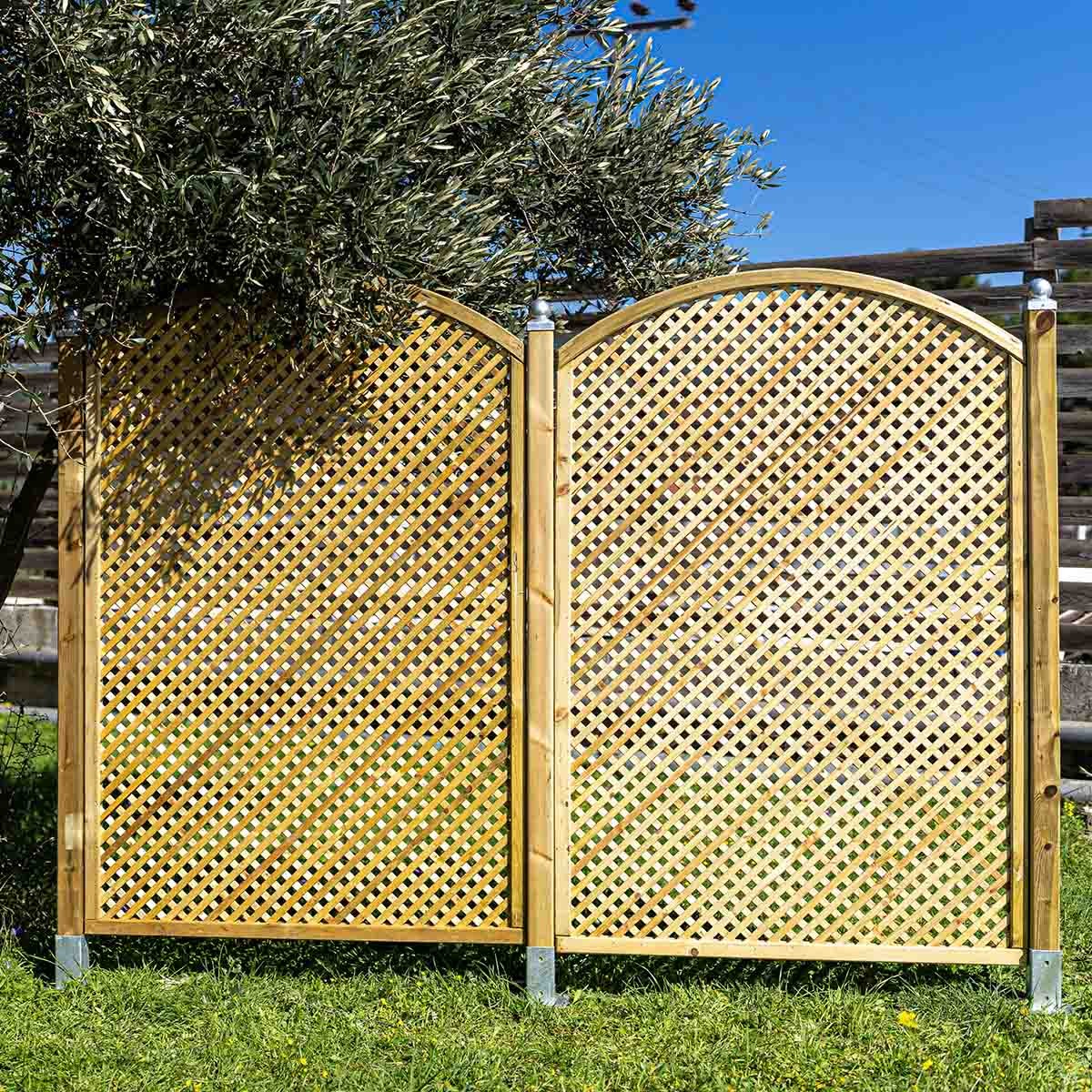 Το καφασωτό Διαμάντι Αψίδα 2 x 2εκ. είναι κατασκευασμένο από εμποτισμένο σκανδιναβικό πεύκο. Αποτελείται από εξωτερικό πλαίσιο διατομής 4,5 x 4,5εκ. και εσωτερικά από πηχάκια διατομής 0,8 x 2εκ.