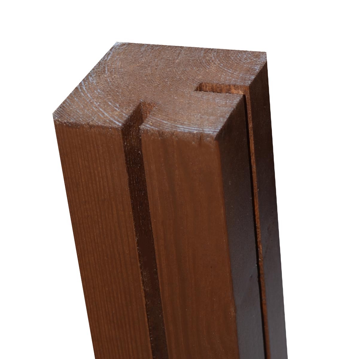 Οι εμποτισμένες κολώνες έχουν σχεδιαστεί ειδικά για την τοποθέτηση των συνθετικών καφασωτών και είναι βαμμένες στην απόχρωση τους.