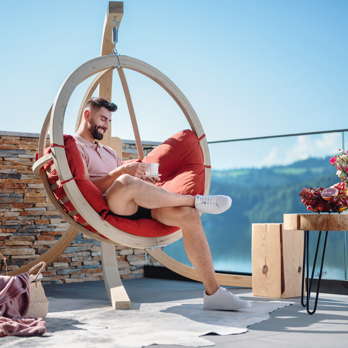 Η κρεμαστή Πολυθρόνα Ήρα μπορεί να χρησιμοποιηθεί σε εσωτερικό η εξωτερικό χώρο. Το μαξιλάρι είναι μαλακό και αφράτο (για να παραμείνει έτσι, συνιστούμε την αποθήκευση του σε εσωτερικό χώρο όταν δεν είναι σε χρήση για πολύ καιρό).