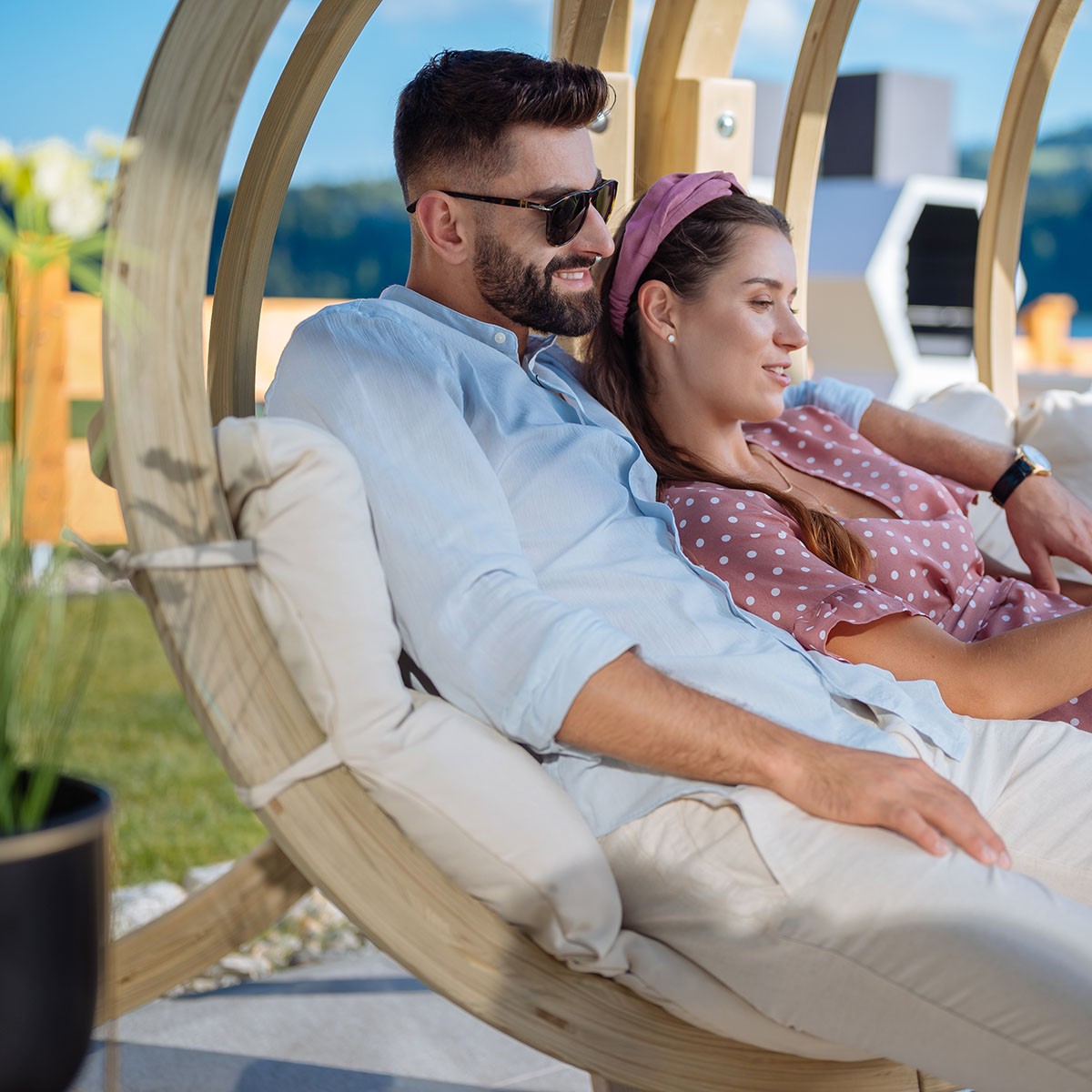 Ο κρεμαστός καναπές Ήρα μπορεί να χρησιμοποιηθεί σε εσωτερικό η εξωτερικό χώρο. Το μαξιλάρι είναι μαλακό και αφράτο (για να παραμείνει έτσι, συνιστούμε την αποθήκευση του σε εσωτερικό χώρο όταν δεν είναι σε χρήση για πολύ καιρό).