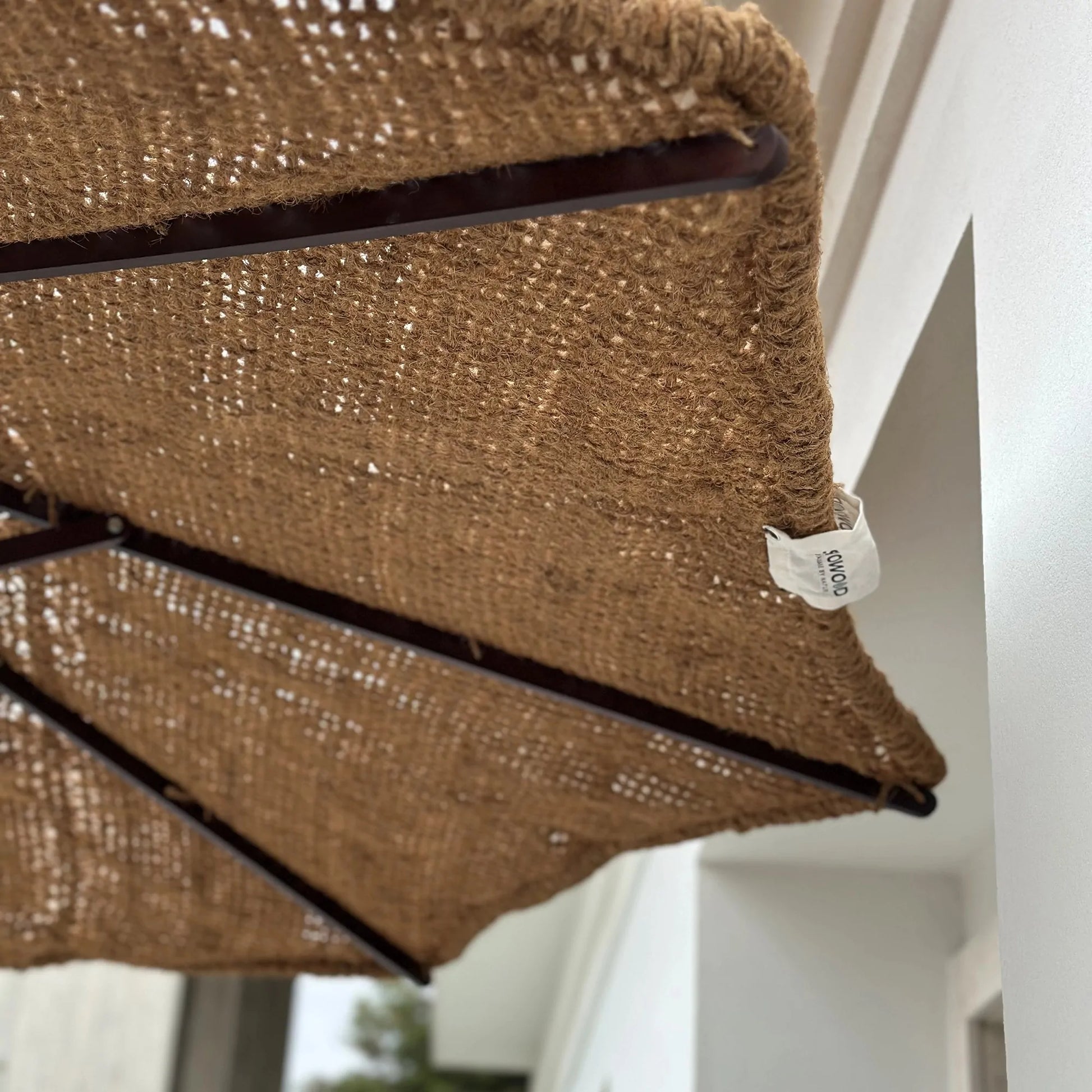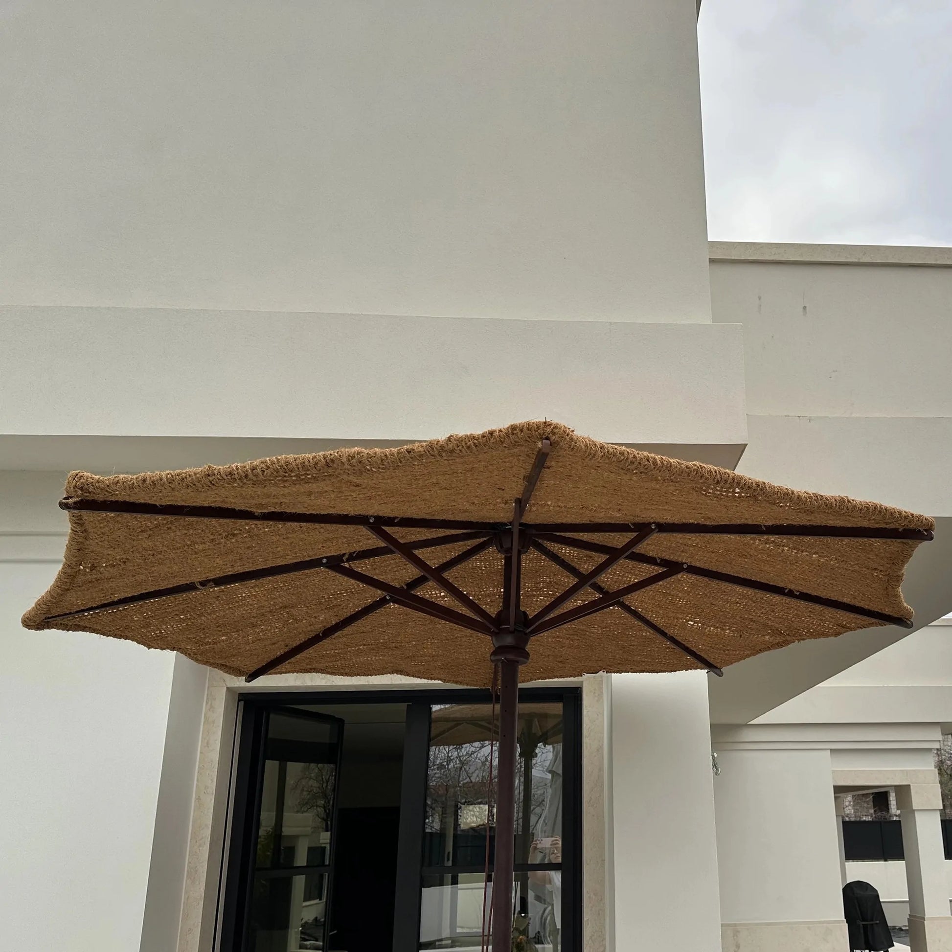 Η ομπρέλα από κοκοφοίνικα αποτελεί μοναδική επιλογή για όσους αναζητούν φυσική σκίαση υψηλής ποιότητας και αισθητικής. Το πανί της είναι κατασκευασμένο από 100% φυσικές ίνες κοκοφοίνικα, σε φυσική καφέ απόχρωση, πλεγμένο με τέτοιο τρόπο ώστε να επιτρέπει τη ροή του αέρα, προσφέροντας απόλυτη δροσιά.