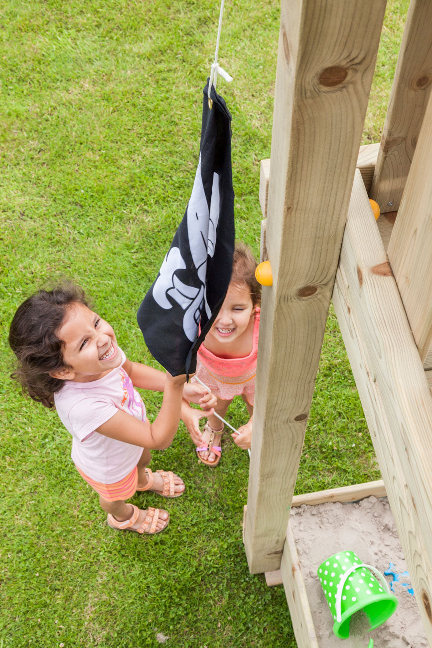 Το σετ σημαίας  διαθέτει ένα μοναδικό σύστημα ανύψωσης  που επιτρέπει στα παιδιά να ανεβάσουν και να κατεβάσουν τη σημαία. Το συνολικό μήκος του σχοινιού έχει μήκος 5 μ. Και μπορεί να κοπεί κατά μήκος στην κατασκευή. Το σετ περιέχει: 1x σχοινί, 2x μαντάλια, 4x βίδες, 1x σημαία.