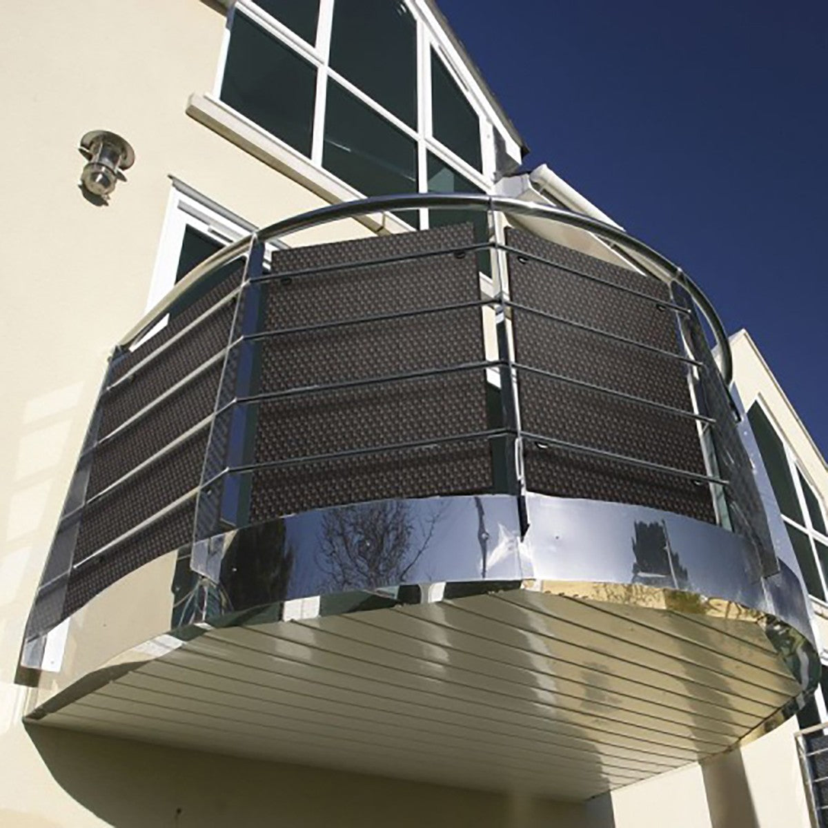Κατασκευασμένο στην Ευρώπη από πλεγμένες λωρίδες ρατάν (πολυαιθυλένιο), είναι ιδανικό για μπαλκόνια και προστατευτικό από τον αέρα. Είναι εύκαμπτο, κόβεται εύκολα προς οποιαδήποτε κατεύθυνση (είναι θερμικά συνδεδεμένο ώστε μετά την κοπή να μην ξεπλέκεται) και καθαρίζεται με σαπουνόνερο.