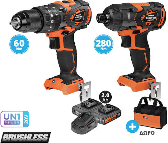 Σετ Δραπανοκατσάβιδο & Παλμικό Κατσαβίδι 20V με 2 Μπαταρίες 2Ah και Θήκη Krausmann US121-22SB