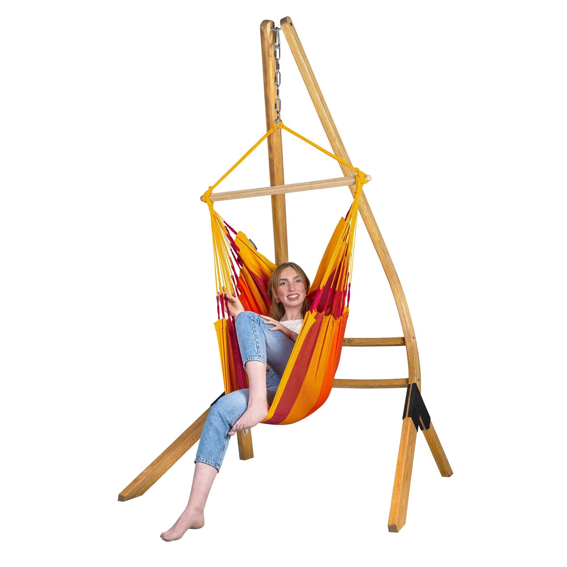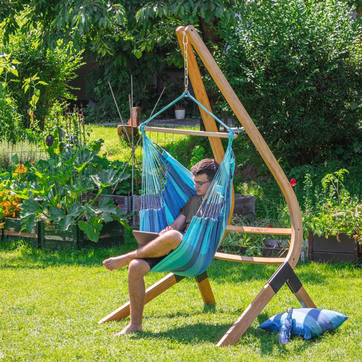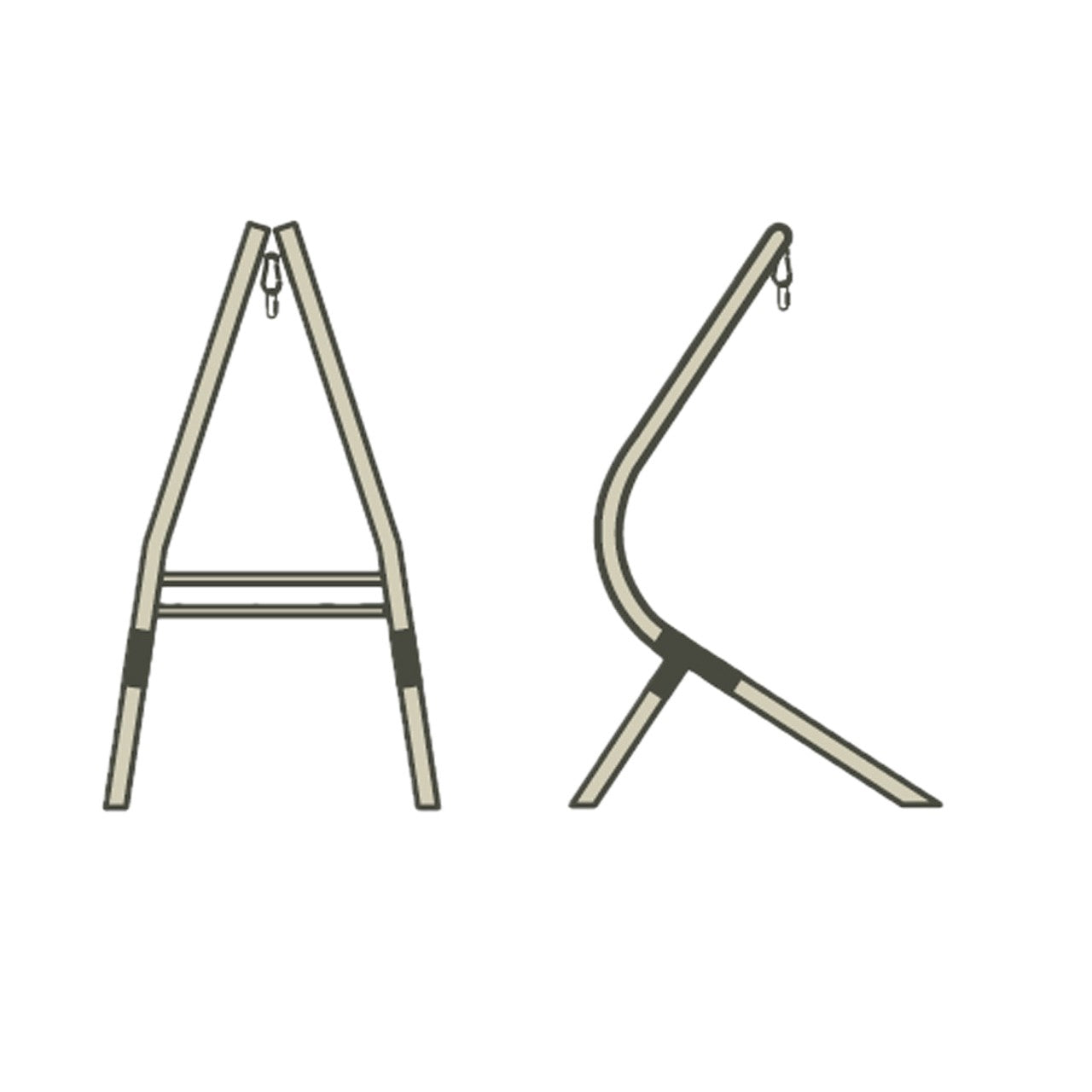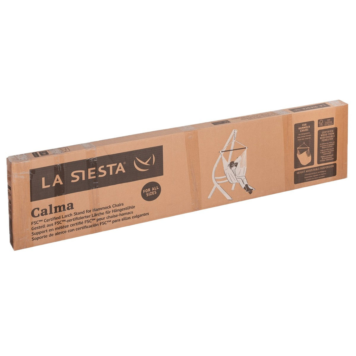 Η βάση Calma από πιστοποιημένο ξύλο Πεύκης FSC™ συνδυάζει κομψότητα και σταθερότητα και είναι συμβατή με όλα τα μεγέθη αιώρας καρέκλας LA SIESTA.
