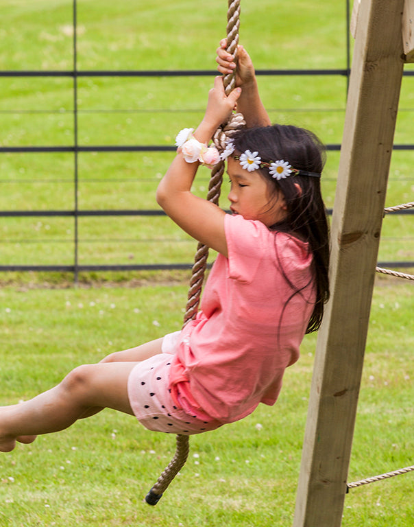 Το σχοινί με κόμπους είναι κατασκευασμένο από ένα παχύ σχοινί Ø25 mm που είναι η ελάχιστη υποχρεωτική διάμετρος για σχοινιά αναρρίχησης όπως περιγράφεται στα πρότυπα ασφαλείας EN71-8.