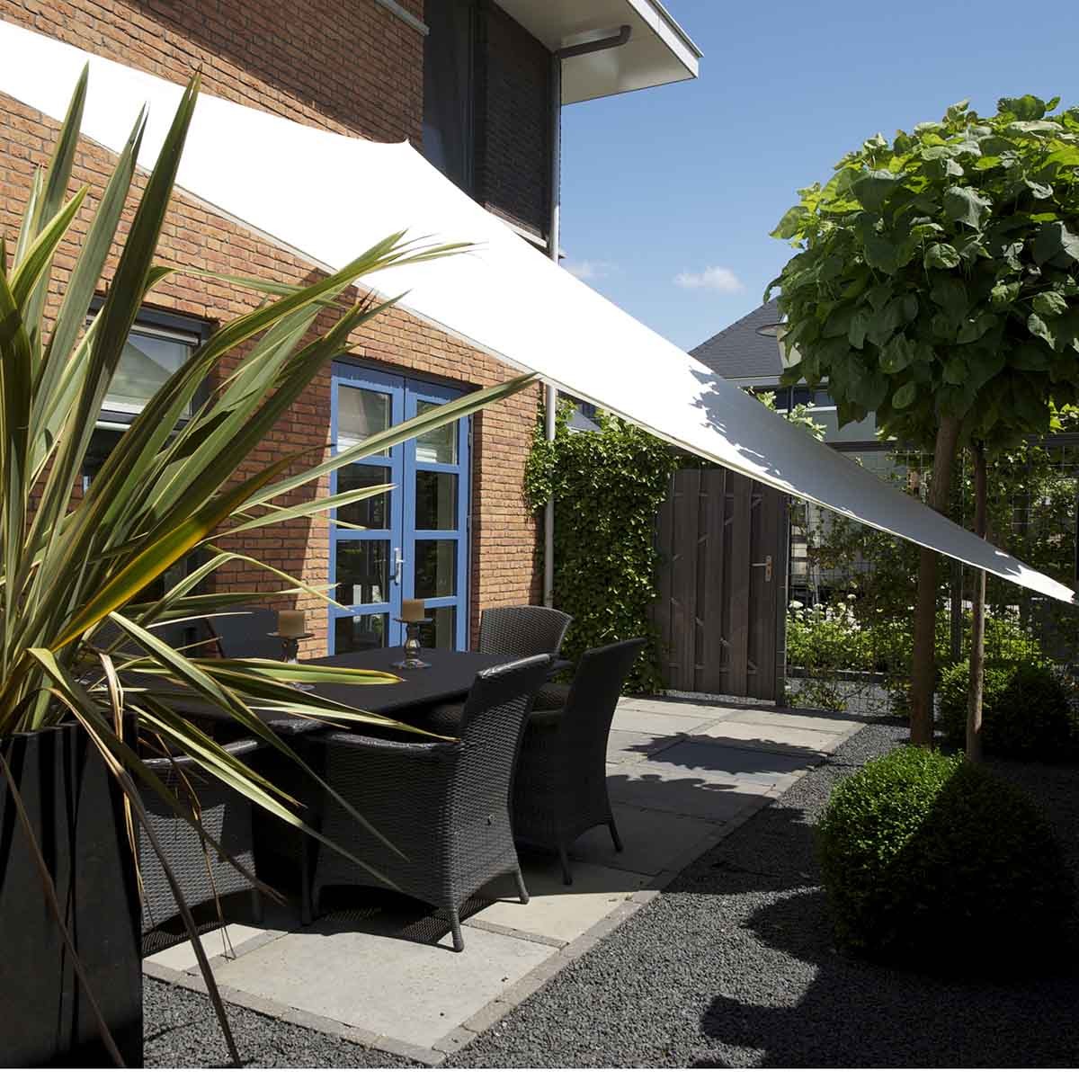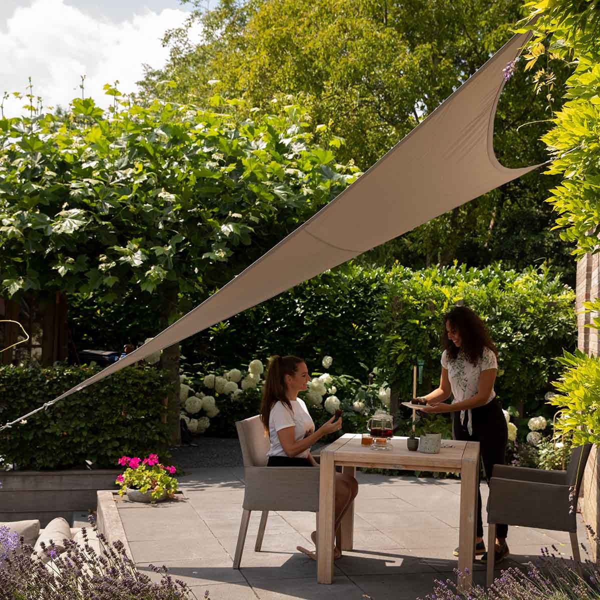 Τα αδιάβροχα πανιά σκίασης παρέχουν προστασία από τον ήλιο και τη βροχή. Απλά βεβαιωθείτε ότι μια γωνία είναι ελαφρώς χαμηλότερη από τις άλλες γωνίες για να αφήσετε τη βροχή να ξεχειλίσει. Τα πανιά σκίασης δίνουν πάνω από 90% UV προστασία, επιτρέποντάς σας να χαλαρώσετε κάτω από αυτό χωρίς να ανησυχείτε.