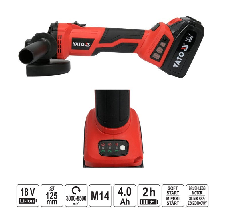 ΤΡΟΧΟΣ ΓΩΝΙΑΚΟΣ ΡΥΘΜΙΖΟΜΕΝΟΣ 18V/125ΜΜ 1X4Ah YT-828294