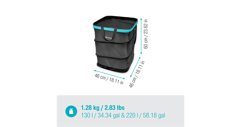 11715-20 Aναδιπλούμενος Tετράγωνος Κάδος Συλλογής Απορριμμάτων Gardena 127lt