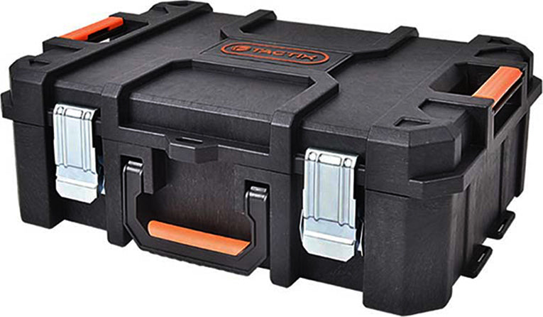 Δυνατότητα σύνδεσης με την εργαλειοθήκη tactix 320361. Ειδικά κλιπς κουμπώνουν και ασφαλίζουν της εργαλειοθήκες μεταξύ τους αλλά και σε καρότσι μεταφοράς.