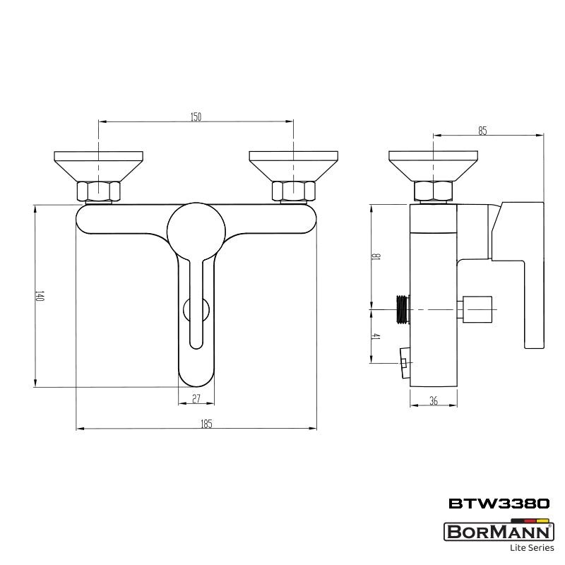 BORMANN BTW3380 Μπαταρία Μπάνιου Violet, 35mm, Αναμεικτική, 1120G, Με Σετ Ντους