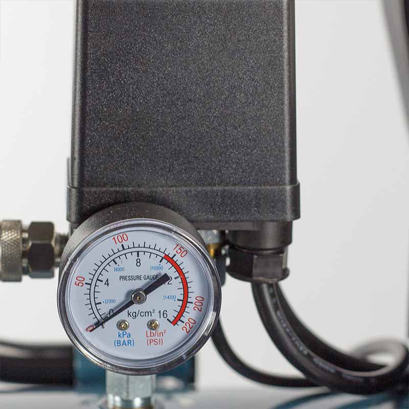 και ικανότητα μεγάλης παροχής αέρα. Με δύο μανόμετρα για ένδειξη πίεσης αέρα