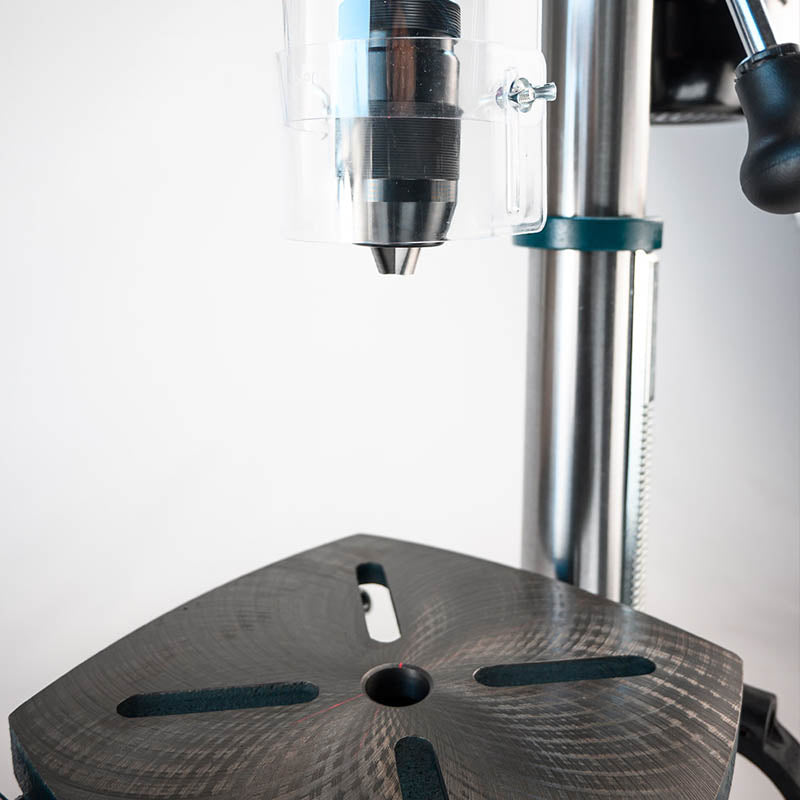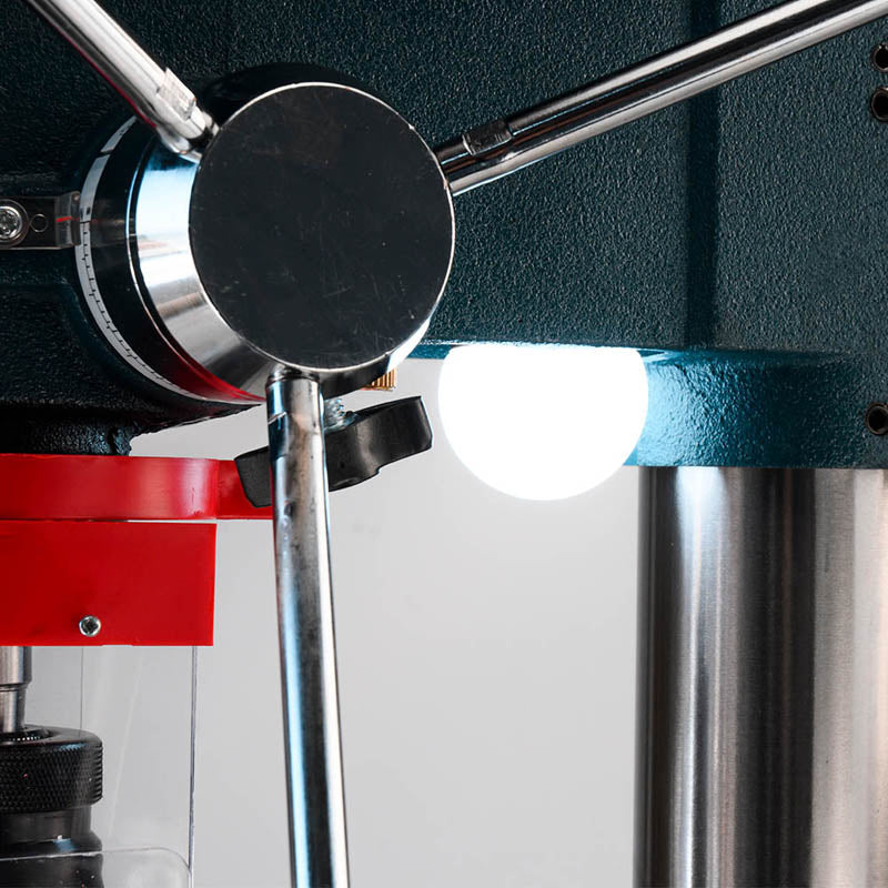 Περιλαμβάνει διακόπτη NVR, ψηφιακή οθόνη ταχύτητας διάτρησης, φως λέιζερ και LED, ρυθμιζόμενη γωνία τραπέζης εργασίας, χειρολαβή τροφοδοσίας τριών ακτίνων, προστατευτικό τσοκ ασφαλείας, ράβδος και γρανάζι για ακριβείς ρυθμίσεις ύψους τραπέζης, ανθεκτική βάση από χυτοσίδηρο