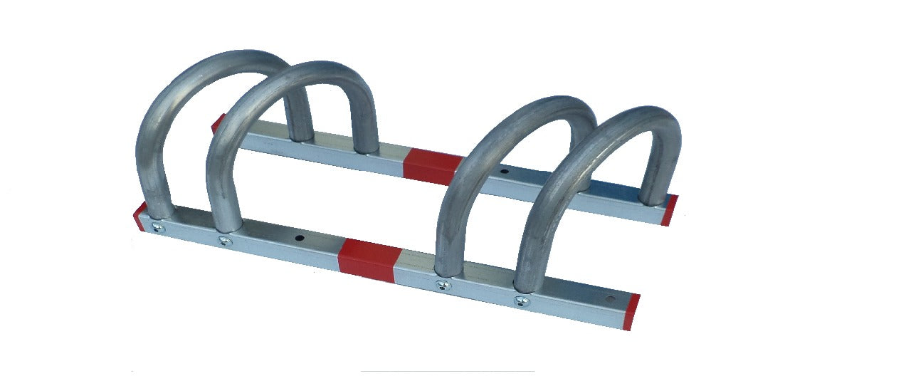 Μπάρα στάθμευσης ποδηλάτων 2 θέσεων. Ιδανική για καταστήματα αλλά και για ιδιωτική χρήση. Ο μπροστινός τροχός τοποθετείται διαγώνια ώστε να μην συγκρούονται τα τιμόνια μεταξύ τους. Κατασκευασμένη από κουρμπαρισμένες γαλβανιζέ σωλήνες.