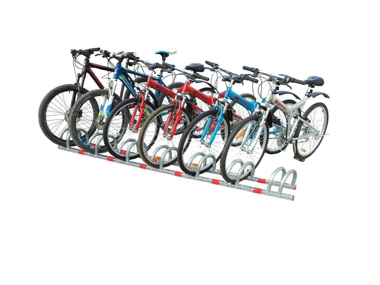 Μπάρα στάθμευσης ποδηλάτων 7 θέσεων. Ιδανική για καταστήματα αλλά και για ιδιωτική χρήση. Ο μπροστινός τροχός τοποθετείται διαγώνια ώστε να μην συγκρούονται τα τιμόνια μεταξύ τους. Κατασκευασμένη από κουρμπαρισμένες γαλβανιζέ σωλήνες.