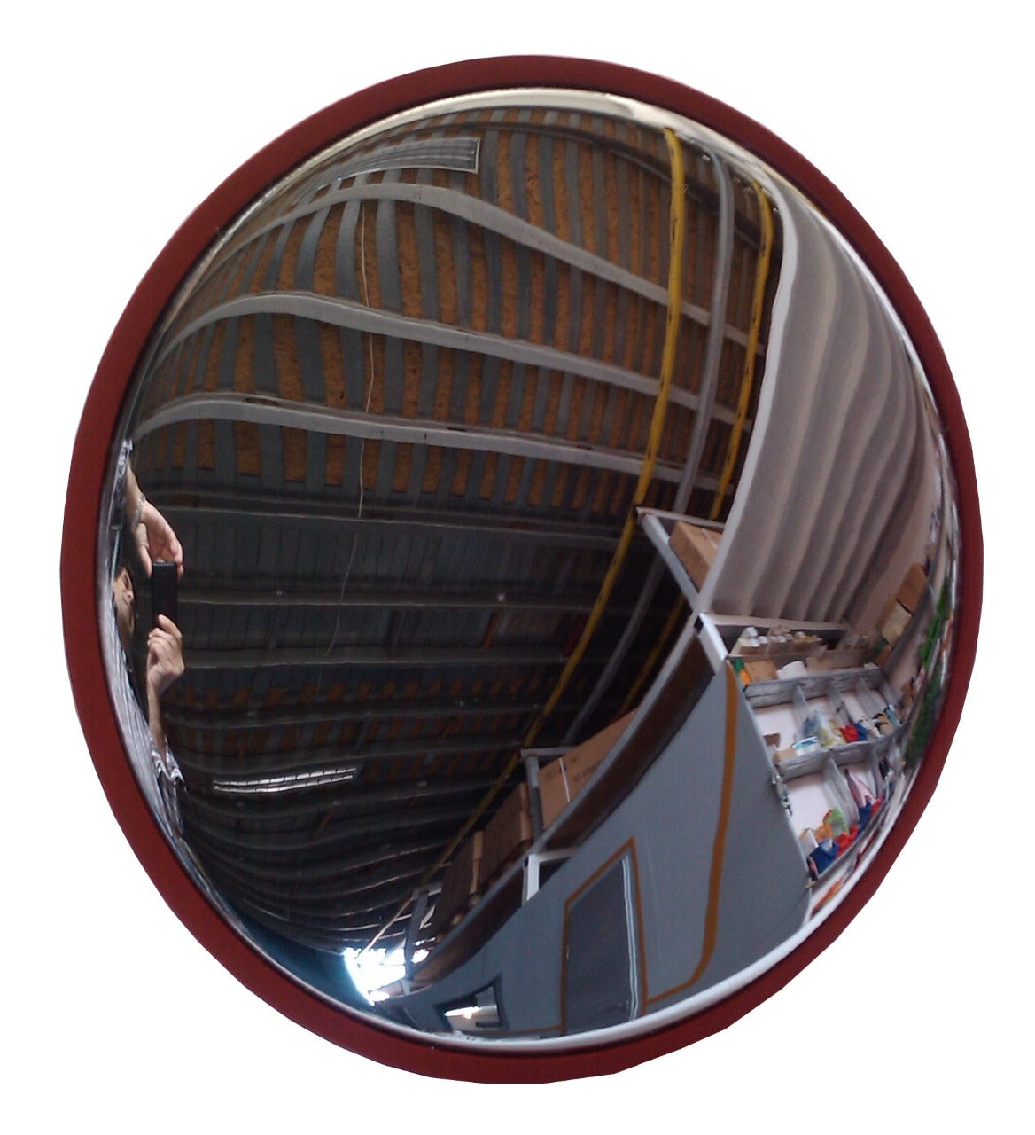 Καθρέπτης ασφαλείας Φ45. Τοποθετείται κυρίως σε εσωτερικούς χώρους και διαθέτει περιμετρική ενίσχυση από αλουμίνιο. Η γωνία τοποθέτησης του μπορεί να ρυθμιστεί από την ειδική βάση για στήριξη σε τοίχο που διαθέτει.