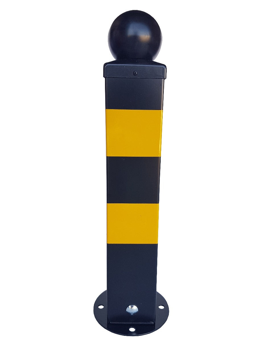 Μεταλλικό κολωνάκι σταθερό με μπάλα για τελείωμα. Τετραγωνικής διατομής, 100Χ100mm και 600mm ύψος. Γαλβανιζέ, βαμμένο ηλεκτροστατικά, με ενισχυτικά νεύρα εσωτερικά και ανακλαστικές ταινίες.