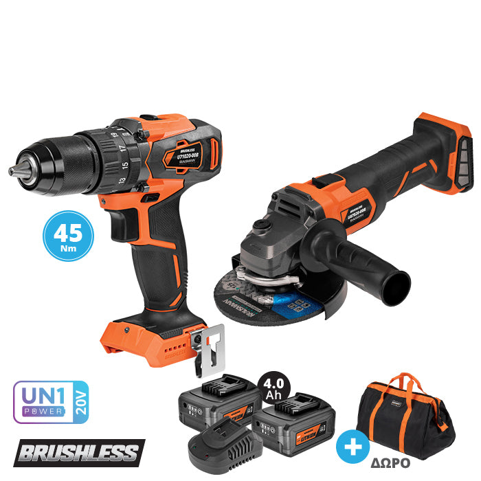 ΣΕΤ ΔΡΑΠΑΝΟΚΑΤΣΑΒΙΔΟ ΚΡΟΥΣΤΙΚΟ ΚΑΙ ΓΩΝΙΑΚΟΣ ΤΡΟΧΟΣ Ø125 20V ΜΕ 2 ΜΠΑΤΑΡΙΕΣ 4.0Ah KAI ΤΑΧΥΦΟΡΤΙΣΤΗ ΚΑΙ ΤΣΑΝΤΑ US107-24SB KRΑUSMANN
