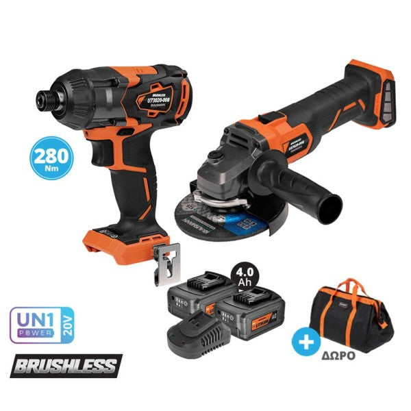 ΣΕΤ ΠΑΛΜΙΚΟ ΚΑΤΣΑΒΙΔΙ KAI ΓΩΝΙΑΚΟΣ ΤΡΟΧΟΣ Ø125 20V ΜΕ 2 ΜΠΑΤΑΡΙΕΣ 4.0Ah - ΤΑΧΥΦΟΡΤΙΣΤΗ ΚΑΙ ΤΣΑΝΤΑ US109-24SB KRAUSMANN
